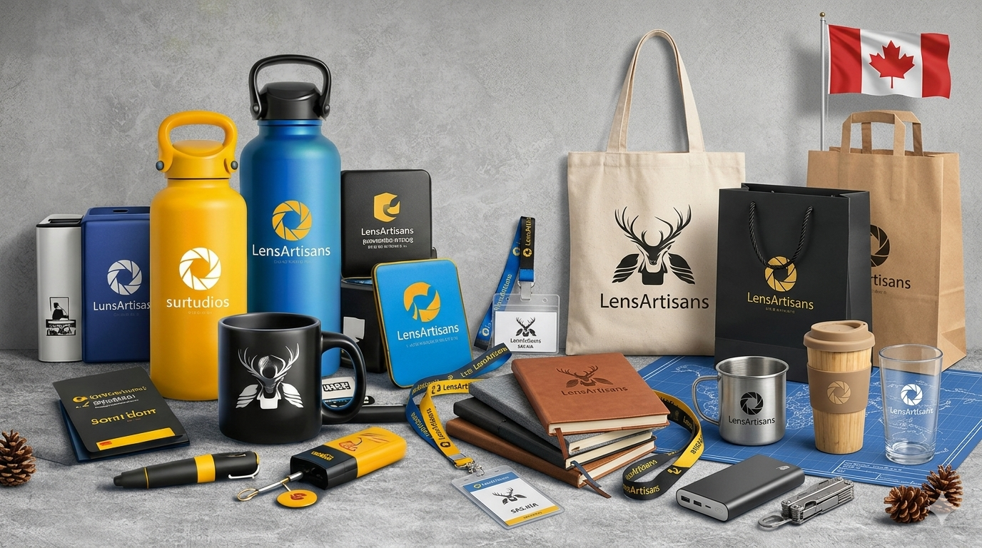 Custom water bottles, mugs, and unique gifts tailored to your business identity.