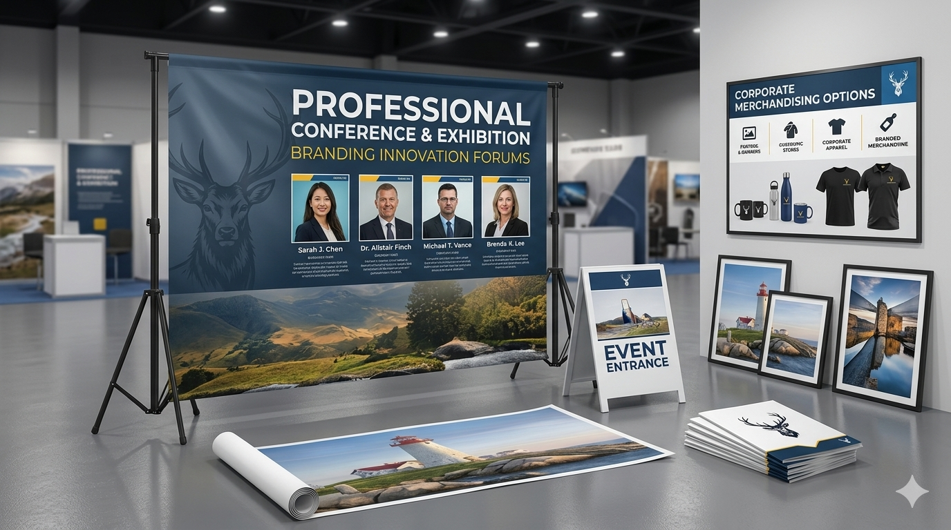 Premium corporate apparel, large-format posters, and custom branding solutions.